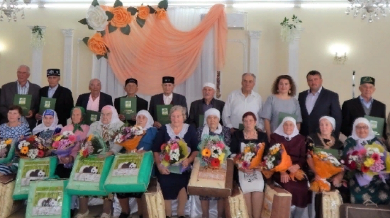 На мероприятие были приглашены супруги, прожившие в браке 50, 55 и 60 лет. Из нашего села были приглашены «золотые» юбиляры Салимулла и Гульсина Салаховы.