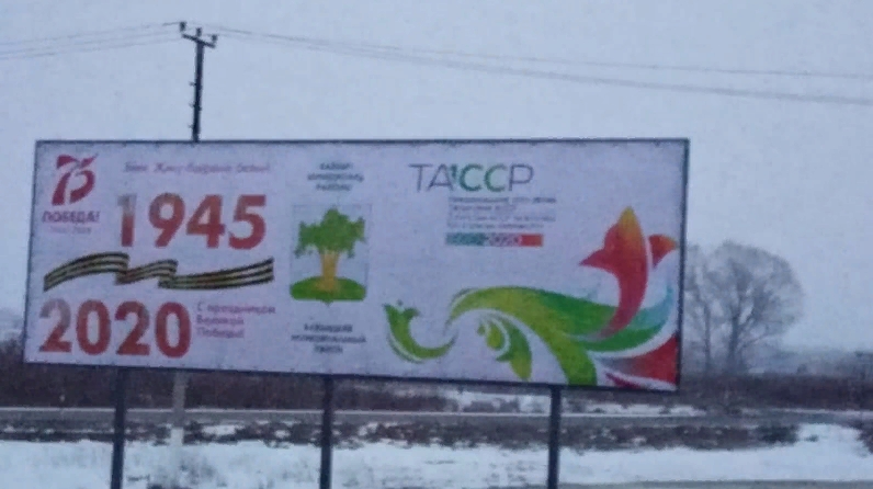 Мөрәле авылыннан чыгу юлында Бөек җиңүнең 75 еллыгы һәм ТАССР төзелүнең 100 еллыгы уңаеннан логотиплы щит урнаштырылган.